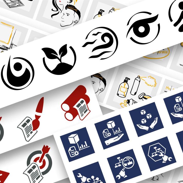 Für Dein professionelles Corporate-Identity (CI) sind auch die sogenannten Key Visuals und Icons zu generieren, welche sich in Website, Dokumenten usw. als Wiedererkennungs-Merkmal wiederholen und das Design abrunden.